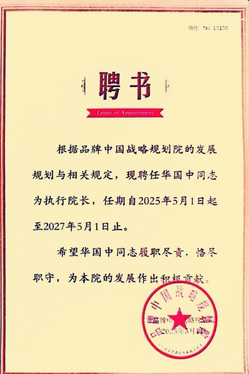 [品牌強國]華國中榮任品牌中國戰略規劃院新榮譽