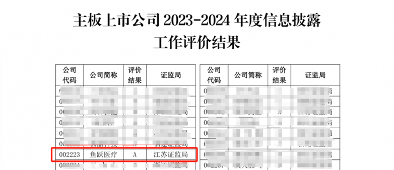魚躍醫療榮獲深交所信息披露工作“A”級評價
