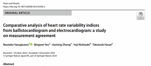 “我們的研究結果表明,平均IBI的時域指數具有很高的相關性。Bland-Altman分析表明,LOA與其他研究中(ECG)的 LOA相當,BCG裝置的JJ間期可以作為心電圖的合適替代品。SDNN、RMSSD和pNN50的相關性很高,95%以上的 數據在LOA范圍內。”這是日本順天堂大學教授葛西團隊的評價。