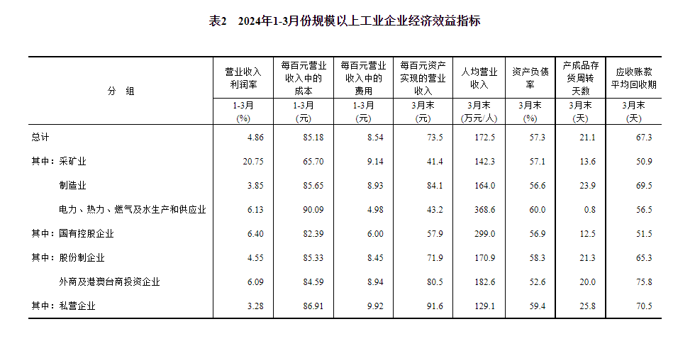 2024年1—3月份全國規模以上工業企業利潤增長4.3%
