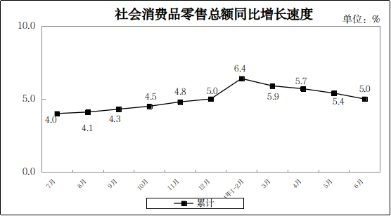福建省2024年1-6月社會(huì)消費(fèi)品零售總額增長(zhǎng)5.0%