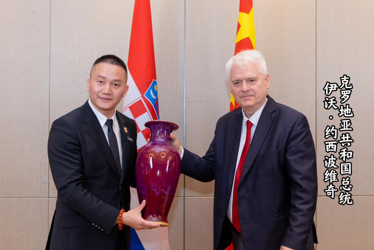 鈞瓷,作為中國五大名瓷之一,是中國的國禮之一,其獨特的窯變藝術令人嘆為觀止。釋行風董事長特意將國家級非物質文化遺產鈞瓷傳承人苗長強精品鈞瓷贈予克羅地亞共和國前總統伊沃·約西波維奇、皮黑塞族共和國前總理姆拉登·伊萬尼奇等各國元首。這一舉動不僅展示了中國陶瓷藝術的精湛技藝,更讓外國友人領略到了中華文化的博大精深。