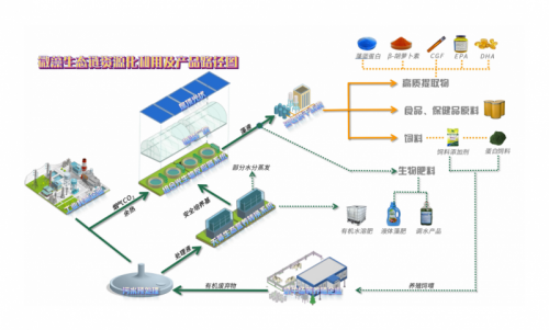 為了進一步推動微藻產業的發展,江蘇藻鏈生態科技公司開始建設黑龍江省大慶市林甸縣微藻養殖資源化利用項目,總投資22.5億元。近期,中建六局的全資一級子公司中標了該項目的EPC施工總承包工程。該項目將實現漁、藻、光一體化農光互補生態鏈產業,通過污廢水凈化、碳捕集與碳封存、營養物質回收及高利用價值生物質產出的完整產業化路徑,構建滿足多種行業需求的廢棄物資源利用與場景互補的“碳中和”綠色循環經濟生態鏈。項目達產后可年消納周邊污水120萬噸,生產藻類產品2萬噸,并可為項目地周邊提供大量的優質有機液體藻肥,為整體養殖業綠色循環發展和農業面源污染防治總體目標的實現提供了綜合性解決方案。