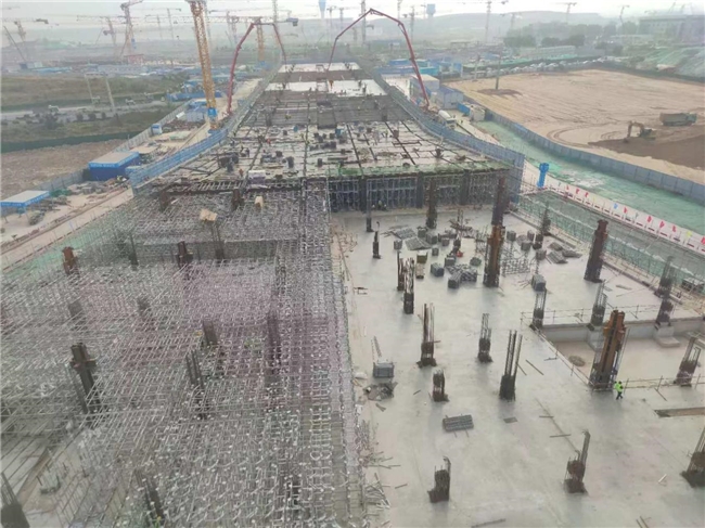 今年三季度以來,隨著T2航站樓E指廊項目二層結(jié)構(gòu)施工的開始,地上主體結(jié)構(gòu)進入了建設(shè)加速期。在建設(shè)單位濟南國際機場建設(shè)有限公司的統(tǒng)籌協(xié)調(diào)和大力推動下,施工單位中建新疆建工精心策劃、科學(xué)組織,搶抓施工黃金期,抓實抓細工程質(zhì)量安全工作,同步作業(yè)實現(xiàn)多點開花,全力加快E指廊地上主體結(jié)構(gòu)施工,形成“大干快上”的良好局面。