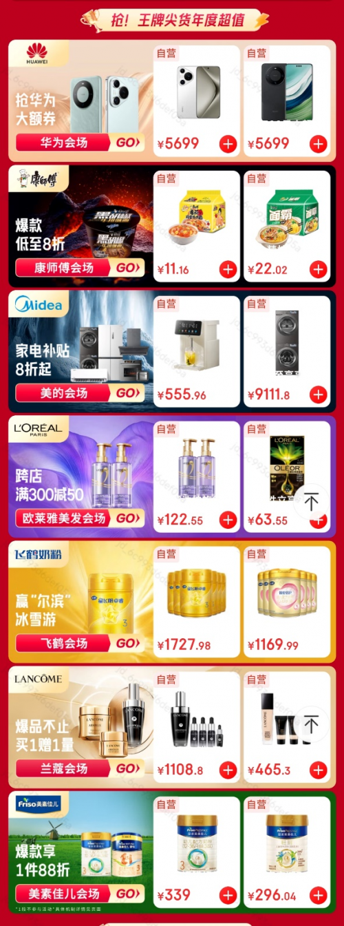 除了可以1元搶購的大牌爆款,各大品牌此次也為消費者帶來了專屬折扣。如康師傅將為品牌會員用戶提供抽取華為Mate60手機的機會;蘭蔻將提供爆品不止“買1贈1”優惠;購買華為產品的消費者可以領取至高1000元的大額優惠券;選購美的產品的消費者可享額外補貼,優惠低至8折起。此外,消費者購買歐萊雅產品可享跨店滿300元減50元的優惠;下單飛鶴產品即可參與活動贏取亞東會門票;選購惠氏爆款產品可享優惠低至88折,集罐加贈還能贏取千元好禮;美素佳爾滿罐至高贈1299元豪禮。此外,追覓、羅技、始祖鳥、新秀麗、Bose等品牌也都將為消費者提供專屬折扣。
