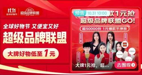 萬件爆款1元搶 京東11.11超級品牌聯盟攜手大牌送好禮