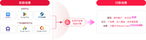 萬里匯不僅能夠收取來自App Store、Google Play、Steam等應用平臺的收入,還支持Facebook、Google Adsense、Google AdMob等廣告流量變現渠道的收款,并且賬戶余額可以直接通過萬里匯發行的虛擬支付卡萬里付卡直接付日常廣告投放、達人傭金、技術服務等費用,免去換匯步驟,規避匯率波動風險。一站式收付款體驗高效又便捷,擁有一個萬里匯開發者賬號,即可掌控出海收付。