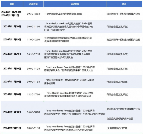 大會期間將舉辦系列精彩活動,包括“絲路大健康”2024年世界草藥醫學發展大會開幕式暨大秦嶺中草藥卓越中心(中國·丹鳳)啟動大會、中醫藥產業(企業)推介會暨中醫藥產業國際化學術發展大會、“傳承智慧創新未來”傳承人大會、“融合傳統與現代,共探健康之道”藥膳在人類健康中的應用大會、全球中醫傳承人名醫義診活動及“絲路之約·健康同行”中醫藥知名企業考察行等。此次大會不僅是對中醫藥及世界草藥醫學的全面展示,更是對秦嶺中草藥資源的深度挖掘與開發利用,將為地方經濟發展注入新的活力,推動“中國·丹鳳”成為驅動世界中草藥醫學與民族醫學創新發展的新引擎。
