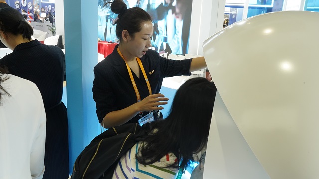 ▲第七屆進博會現場顧客使用B.U.T.ESSE AI 技術的肌膚檢測儀