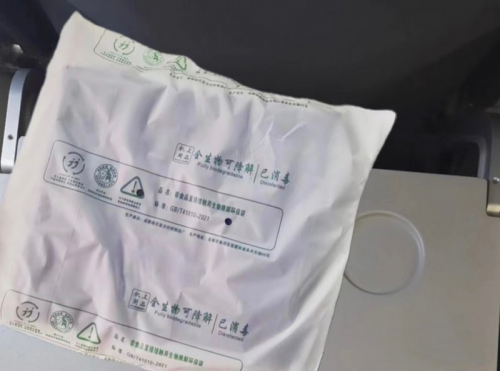 隨后,一家航司負責采購的工作人員告訴記者,目前國航、川航、東航、成航等公司都已經要求供應商提供這類材質的包裝袋,逐漸替換原來的傳統PE塑料袋。