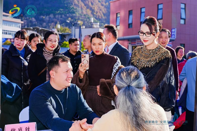 來自哈薩克斯坦的比特先生及其他幾位嘉賓一起感受了傳統中醫的神奇與魅力,并且親自在現場替群眾把脈問診。