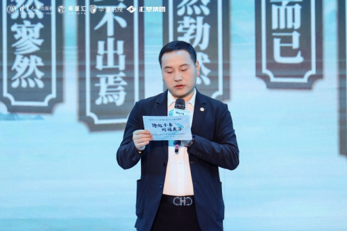緊接著,代表著吉祥降臨的萬(wàn)蝶,物我合一,從大屏幕“飛出”,然后從會(huì)場(chǎng)后方飛回來(lái),祝福全場(chǎng)來(lái)賓。于此同時(shí)鄭義林老師正式登臺(tái)進(jìn)行他的年度演講。鄭義林在開(kāi)場(chǎng)時(shí)向大家表示,盡管當(dāng)今社會(huì)經(jīng)濟(jì)形勢(shì)嚴(yán)峻,大家依然能夠抽空參與本次活動(dòng),深感欣慰。他提到,過(guò)去兩年,全球經(jīng)濟(jì)下行,不少人感到焦慮。面對(duì)這種困境,鄭老師選擇回歸古典哲學(xué),尤其是研究莊子,以尋找解答焦慮的智慧。