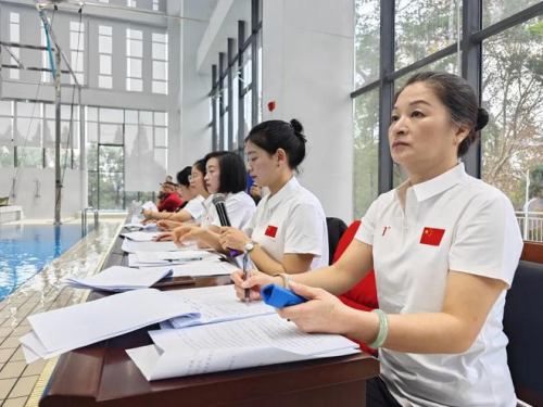 大眾觀賞跳水常聚焦于運動員入水后的水花大小,其實不然,想拿高分還取決于很多技術上的細節。“水花小是錦上添花,還要看準備、助跑、起跳高度、空中姿態、抱腿是否緊、入水等。短暫的幾秒鐘,凝結著運動員的辛勤付出。”顧婉璇指向正在比賽的選手說,完美的表現離不開長時間的專業訓練和經驗積累。
