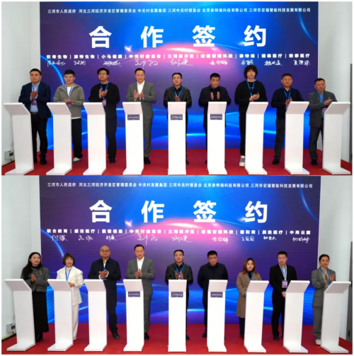 三河中關村信息谷項目將圍繞智能智造、生物醫藥、新能源新材料,科技服務“3+1”產業定位,重點承接京津冀區域產業化項目,與北京上下游產業鏈條深度融合,與廊坊及三河市產業基礎匹配升級,以構建智能制造產業鏈為核心,關注生命健康、新能源新材料等產業風口,構建科技服務為支撐的現代化產業體系,打造智能制造、食品工程、新能源新材料等領域的企業研發、中試、成果轉化、生產制造等產業集聚創新區。論壇現場舉行了三河中關村信息谷首批意向合作企業簽約儀式。北京欽希生物科技有限公司、北京派特博恩生物技術開發集團有限公司、小馬健康科技(北京)有限公司、北京奈特瑞科技有限公司、湖南省健緣醫療科技有限公司、微泰醫療(杭州)股份有限公司、聯合教育科技(深圳)集團有限公司、威海圣潔醫療科技有限公司、北京醫者信息科技有限責任公司、善和榮(天津)企業管理有限公司、辰浩醫療科技(廣東)有限公司、中再云圖技術有限公司12家企業簽署意向入駐協議,將與三河中關村信息谷攜手并肩、共贏發展。