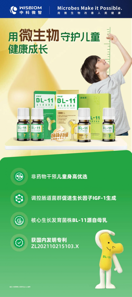 總之,維持腸道內(nèi)有益菌群的平衡對于優(yōu)化消化吸收過程、支持免疫功能和促進整體健康非常重要,是實現(xiàn)孩子健康成長的關(guān)鍵。而通過科學(xué)配方、安全效果,賽哺高® BL-11益生菌油滴液,不僅有助于維護腸道健康,還能夠促進生長素的分泌,助力孩子健康成長。