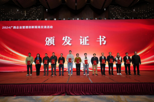 蒙良副會長在會上發布了2024年廣西企業管理現代化創新成果,并為獲獎企業頒發了《廣西企業管理現代化創新成果發布證書》。