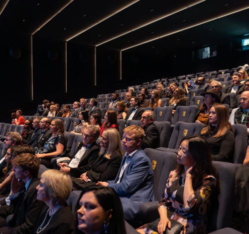 圖為本屆電影獎在英國電影和電視藝術學院(BAFTA)舉辦,中國人文紀錄片《云朵之上》現場放映。