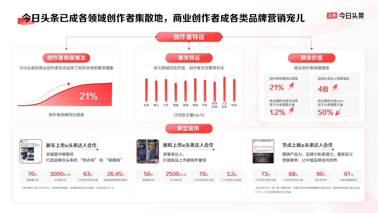 在近日發布的《2024今日頭條平臺營銷通案》中,種種整合營銷方法的歸納和既往案例展示,進一步印證了我們的判斷。可以說,布局今日頭條、搶占熱點內容賽道的營銷先機,讓更多品牌找到了反卷生長的可能。