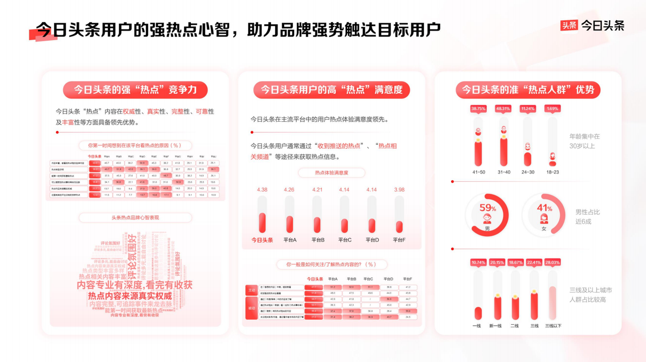 《通案》歸納出今日頭條四大核心優勢,即:高凈值用戶聚集、精品內容生態、熱點事件引爆力、產品矩陣全場景覆蓋。并結合最新實踐案例,助力企業破解“精準曝光、有效破圈、信任營銷”三大品牌營銷難題。