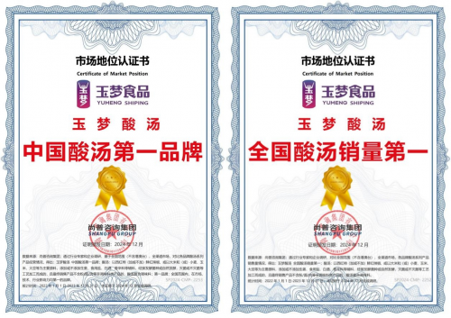 玉夢酸湯榮獲“中國酸湯第一品牌”和“全國酸湯銷量第一”兩項認(rèn)證
