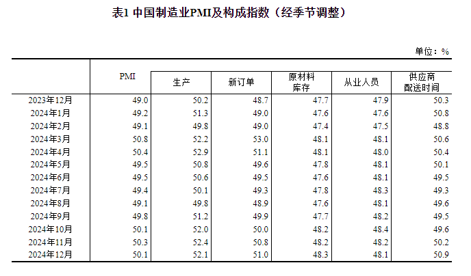 核心提示:2024年12月中國采購經理指數運行情況國家統計局服務業調查中心中國物流與采購聯合會 一、中國制造業采購經理指數運行情況 12月份,制造業采購經理指數(PMI)為50.2024年12月中國采購經理指數運行情況