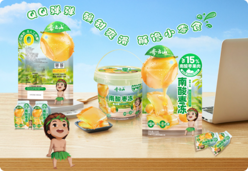 在外包裝設計上,相比普通包裝,齊云山本次打破常規造型桎梏,大膽啟用了異型袋的別致外觀,醒目的金黃色南酸棗鮮果和晶瑩剔透的棗凍令人垂涎欲滴,更是包裝上的點睛之筆。整個包裝設計很好的呈現了產品信息,同時又與其他產品形成了明顯的差異化。