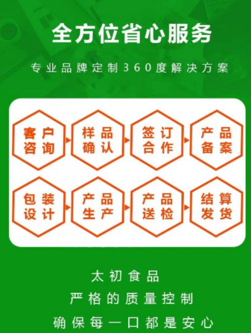 太初食品嚴格的質量控制,確保每一口都是安心。各類爆款均可貼牌代工,葉同仁堂、香港大藥房、印記東方、九珍堂等1800+知名品牌選擇溫州太初。