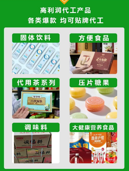 太初食品提供六大爆款定制,包括固體飲料、方便食品、代用茶系列、壓片糖果、調味料、營養食品等,滿足客戶多樣化的產品需求。