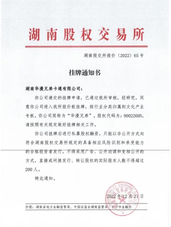 湖南華漫兄弟卡通有限公司成立于2014年,股權代碼900226HN,擁有國家乙級節目制作資質和圖書出版資質,是湖南省原創動漫主力企業,長沙動漫藝術協會副會長單位,開福區文創協會副會長單位。主要以紅色動漫創作為特色,其中,《半條被子》、《強渡大渡河》分別獲得湖南省第四、六屆網絡原創視聽節目大賽《一等獎》,《農村,社區黨員不合格情形的突出十例》獲得中組部電視動畫宣傳片《一等獎》、《最佳策劃獎》;《翻開這一頁》《正義小兔警》獲得國家廣電總局評為《優秀國產動畫一等獎》;
