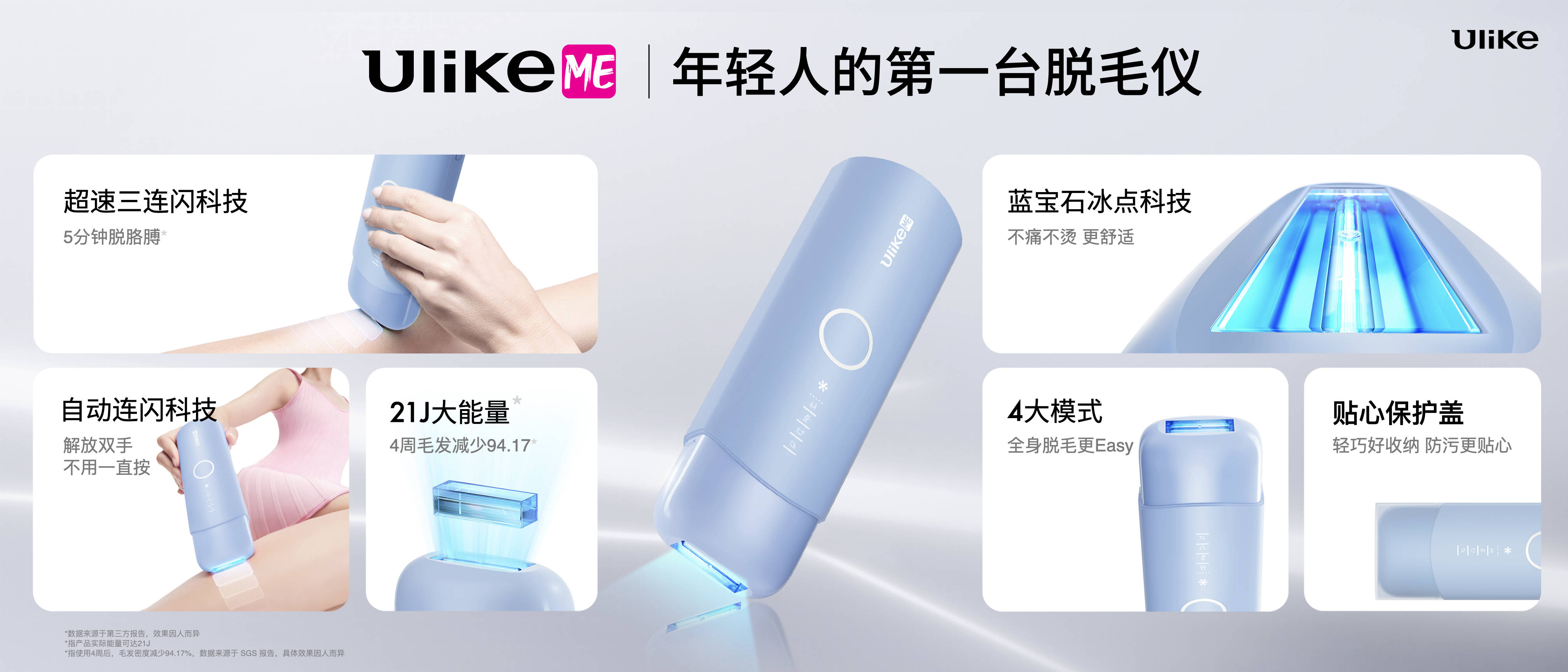 值得一提的是,本次產品發布會還推出了"年輕人的第一臺脫毛儀"——Ulike ME,該產品擁有21J大能量,能讓毛發脫得更干凈;1秒3閃的超快速度,能讓脫毛更高效;自動連閃科技,解放雙手,能讓脫毛更輕松;同樣的真藍寶石冰點科技,不痛不燙,能讓脫毛更舒適,是所有年輕消費者人生第一臺脫毛儀首選。