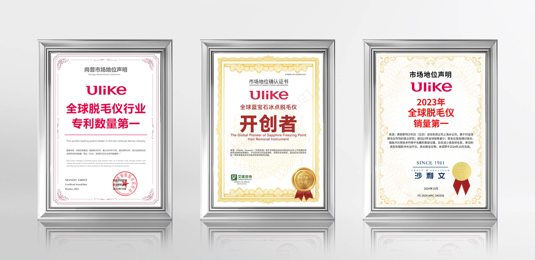 不僅成功掌握光學脫毛行業核心技術,成為全球藍寶石冰點脫毛儀開創者,而且是全球脫毛儀行業專利數第一的標桿企業。截至目前,Ulike產品暢銷全球49國,擁有1000+線下門店,連續3年全球銷量第一,連續9年中國銷量第一。