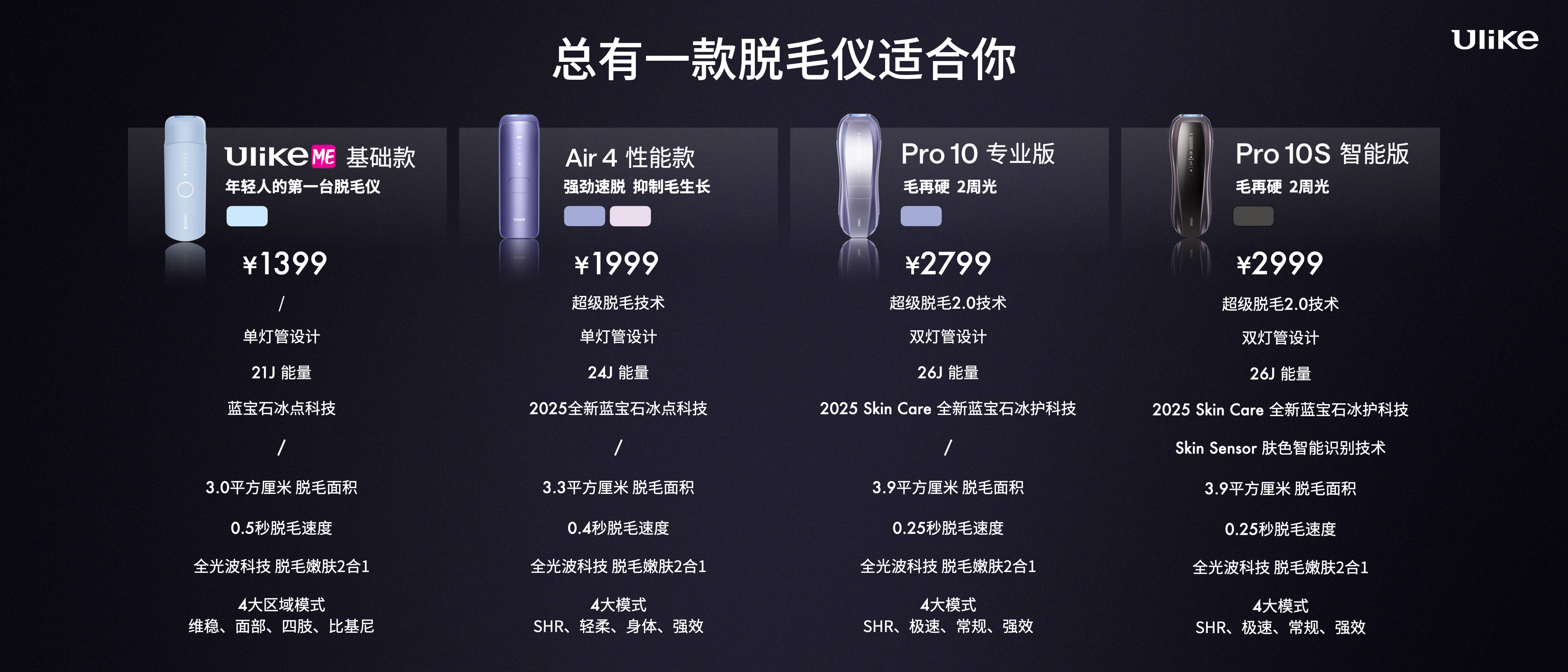 這3款產品各有側重,充分滿足不同人群脫毛需求,真正做到用Ulike藍寶石冰點脫毛儀,讓用戶不再有毛發煩惱。