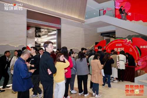 當天下午,在同期舉行的冠珠瓷磚開門紅團購會(廣東區)上,胡杏兒更是與現場消費者熱情互動,以實實在在的筑家優惠、豐富多樣的大禮為大美煥新助力,贏得了熱烈的反響與好評,活動現場選磚、下單熱情高漲。