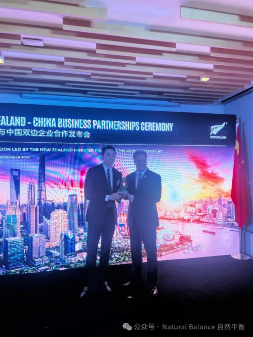 下圖中,BIO-H佰澳和 CEO李佳瑋先生手中拿著的正是 BIO-H佰澳和 在本次中新雙邊企業的合作交流會上榮獲的新西蘭“最具信賴品牌獎”。