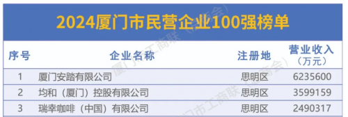 圖:燕之屋上榜2024廈門市民營企業100強榜單