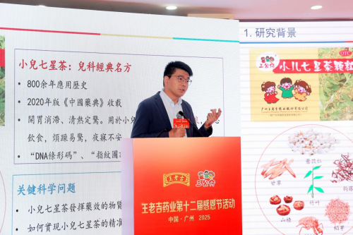 在現場,澳門大學國家重點實驗室王勝鵬教授公布了最新的科研成果。研究顯示,三公仔小兒七星茶能夠顯著改善兒童功能性便秘,具體表現為排便量增加75%至100%,小腸推進率提升40%至60%,糞便含水量增加50%,全腸道轉運時間縮短30%至45%。這些數據不僅驗證了三公仔小兒七星茶的藥效,也為兒童健康提供了更多保障。