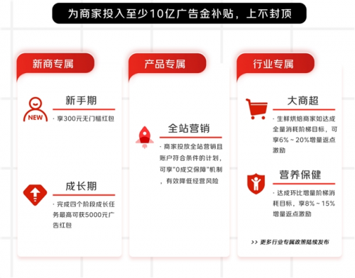 活動中,京東中小新商家廣告運營專家廣告介紹到,今年伴隨京東 “春曉計劃”升級,將為商家投入至少10億廣告金補貼,上不封頂。新商家入駐京東后,可領取300元無門檻廣告紅包,完成成長期階段任務,最高可獲5000元廣告紅包,此外還針對不同行業商家提供了專屬廣告投放返點激勵政策。商家通過廣告紅包可以一鍵開啟全站營銷,快速提升店鋪曝光,助力快速破單,同時還可享全站以營銷產品“0成交保障”機制,幫助新商家有效降低經營風險。