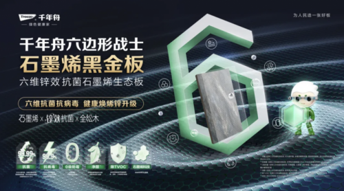 其中石墨烯黑金板就是千年舟科技創新的杰出代表,千年舟將石墨烯應用于板材生產,研發出具有特殊性能的千年舟六邊形戰士-石墨烯黑金板(六維鋅效抗菌石墨烯生態板),全松木材質,聯合鋅效抗菌技術、凈醛技術等提升板材健康度,并最終實現石墨烯、抗菌、抗病毒、防霉、除醛、除TVOC的六大功能,為人體的健康安全保駕護航。