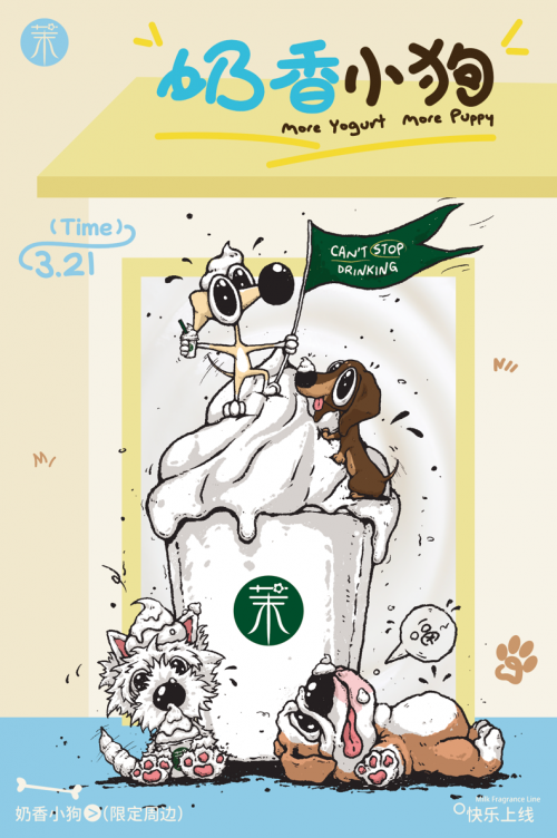 此前,茉酸奶通過與“宮里的世界”“吾島”“鬼滅之刃”等知名IP跨界合作,成功打造了多個極具影響力的聯動案例。這些合作不僅在產品創新方面實現了突破,更在文化融合與品牌傳播上樹立了行業典范。更為典型的是,茉酸奶與超級明星餅干品牌奧利奧攜手,將“吃喝”與“玩樂”巧妙融合,為消費者打造了一場集情感共鳴與氛圍營造于一體的聯動體驗。在最近的國際小狗日期間,茉酸奶還以“奶香小狗”為主題特別策劃了一場寵物友好的主題活動,為鏟屎官和毛孩子們準備了專屬的節日禮物。茉酸奶深刻洞察到,“它經濟”不僅滿足了年輕消費者的情感需求,還為品牌差異化競爭提供了新方向。