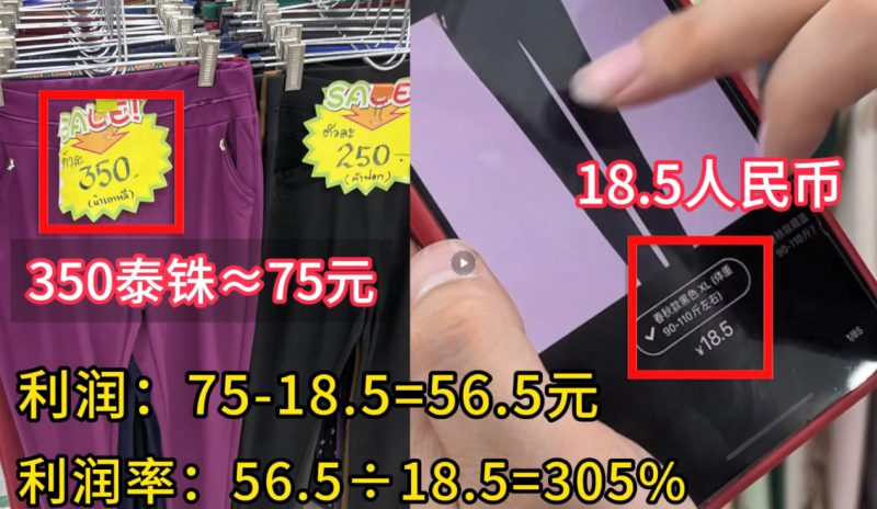 海外產品價格利潤差:國內買18.5元的褲子,在泰國本地批發市場賣350泰銖(人民幣70-80元)。