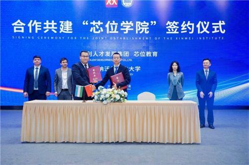 論壇當天,吉利人才發展集團、芯位教育與烏茲別克斯坦納沃伊國立大學還舉行了合作共建“芯位學院”的簽約儀式。
