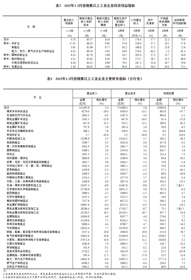 2025年1—3月份全國規模以上工業企業利潤增長0.8%