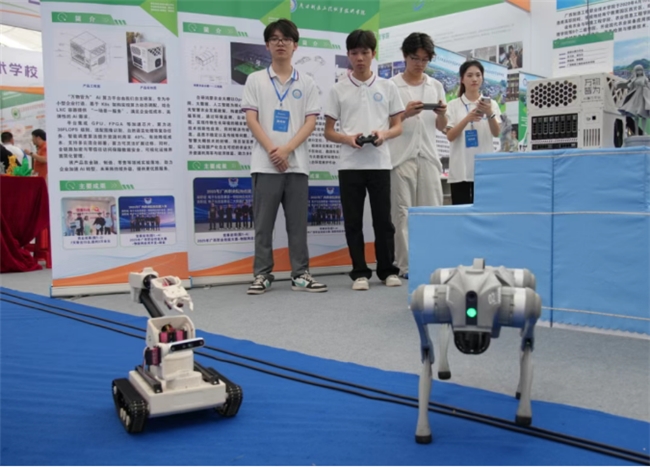 活動(dòng)現(xiàn)場(chǎng)分為職業(yè)教育高質(zhì)量發(fā)展、產(chǎn)教融合、職教出海、技能成才、社會(huì)服務(wù)和民族文化傳承六大展區(qū),智能實(shí)訓(xùn)設(shè)備、科技作品與數(shù)字化教學(xué)場(chǎng)景等職教“黑科技”的展示令人大開眼界,廚藝、茶藝等技能和刺繡、扎染等非遺技藝或火熱、或優(yōu)美,學(xué)生們把“課堂”搬進(jìn)活動(dòng)中,表現(xiàn)出卓越的綜合素養(yǎng)。