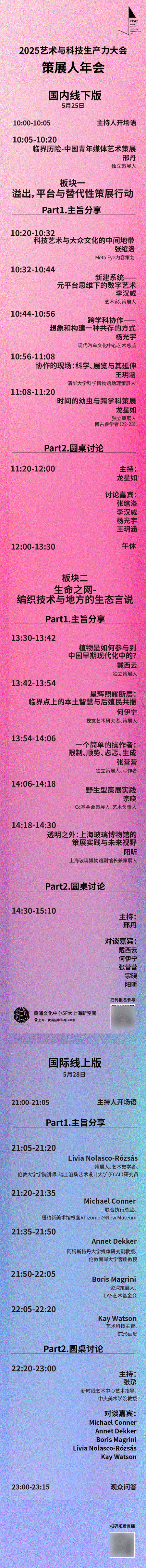 MANA Synergies丨上海超自然聯合新時線媒體藝術中心,將于2025藝術與科技生產力大會(PCAT2025)期間舉辦策展人年會,主題為“策展臨界點”,策展人年會國內線下版將于上海黃浦文化中心舉辦,策展人年會國際線上版將向全球直播。