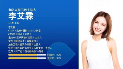知名主持人:李艾霏,中央廣播電視總臺CCTV4—中文國際頻道《走遍中國》主持人/記者;CCTV10—科教頻道《味道》主持人;