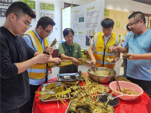 活動現(xiàn)場,粽葉、糯米、紅棗、花生等材料整齊擺放,職工與工友們紛紛化身“手藝達(dá)人”。在經(jīng)驗(yàn)豐富的食堂師傅指導(dǎo)下,大家互相配合,卷葉、填米、裹餡、捆繩,動作從生疏到嫻熟,歡聲笑語中裹出一個個棱角分明的粽子。項(xiàng)目職工感慨道:“平時在工地忙建設(shè),今天和大家一起包粽子,既感受到節(jié)日的溫暖,也體會到匠心的另一種表達(dá)”。