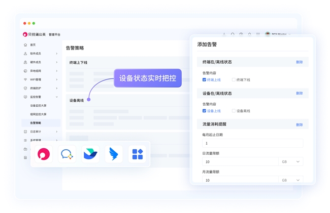 另一方面,貝銳蒲公英依托云管理平臺(tái),可實(shí)時(shí)監(jiān)測(cè)設(shè)備與鏈路狀態(tài),根據(jù)設(shè)定的告警策略,第一時(shí)間記錄并推送異常信息,支持通知至蒲公英管理App或企業(yè)常用的第三方IM工具,如企業(yè)微信、釘釘、飛書(shū)等。通過(guò)云端遠(yuǎn)程管理,網(wǎng)絡(luò)管理員無(wú)需前往現(xiàn)場(chǎng),即可快速、及時(shí)了解網(wǎng)絡(luò)情況,隨時(shí)隨地進(jìn)行設(shè)備調(diào)試,高效處理問(wèn)題。