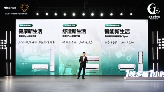 發(fā)布會上,海信空調副總工程師李本衛(wèi)攜2025海信新風家族三款戰(zhàn)略新品亮相。其中,主打“增氧輕音深睡眠”的海信新風空調X3pro、“AI空氣管家 1機頂6機”的海信新風空調璀璨C3pro還是2025FIFA世俱杯官方指定空調,而主打母親人群關懷的海信新風空調X7Pro更是上市就成為媽媽人群的首選。