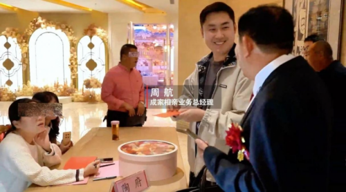 去年,湖北黃岡的陶家長幫兒子在平臺(tái)找到人生伴侶。家長為了表達(dá)感謝,真誠邀請(qǐng)我們出席兒子的婚禮。在大喜的日子,成家相親業(yè)務(wù)總經(jīng)理周航乘飛機(jī)南下1000多公里,奔赴湖北省黃岡市蘄春縣,現(xiàn)身陶家長兒子的婚禮現(xiàn)場。