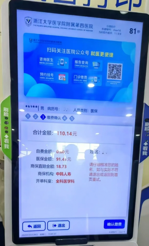 3月26日下午,國家醫保局黨組成員、副局長黃華波一行赴金華調研公司參與的醫保商保“雙平臺一通道”推進工作。在浙江大學醫學院附屬第四醫院詳細了解了公司的“主動超快賠”服務,并給與高度評價。(圖為調研現場和客戶端界面)